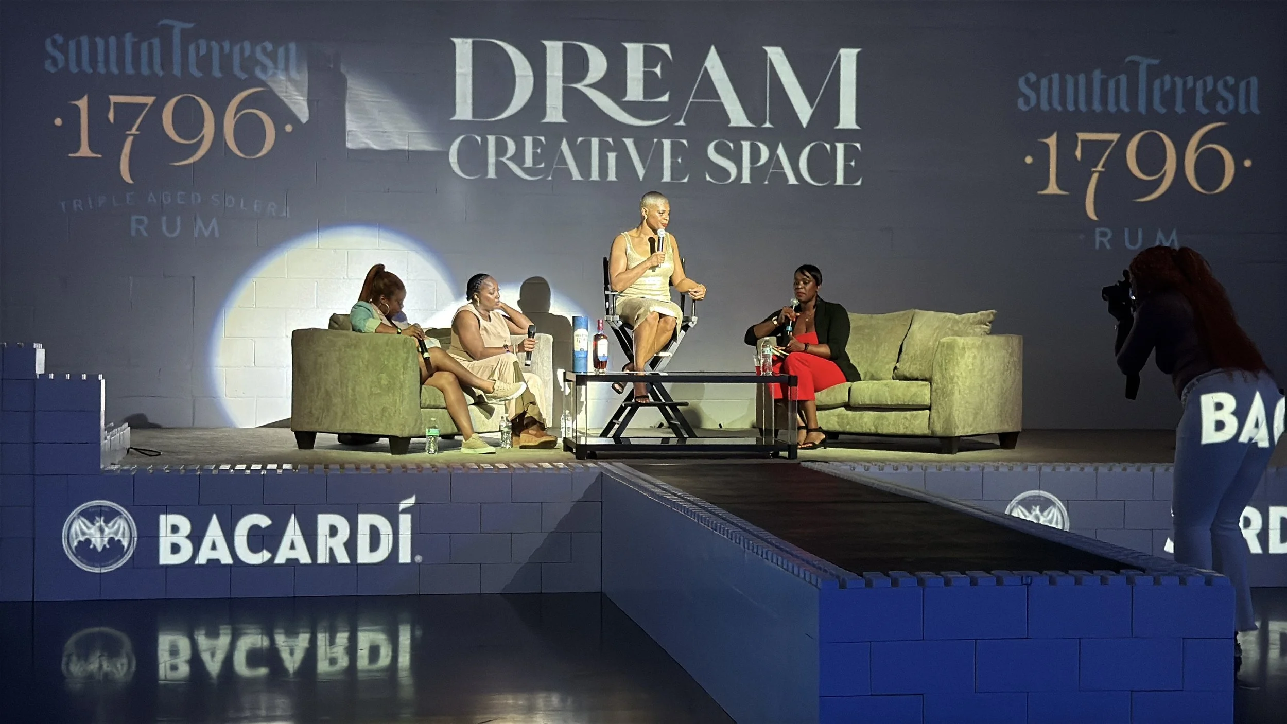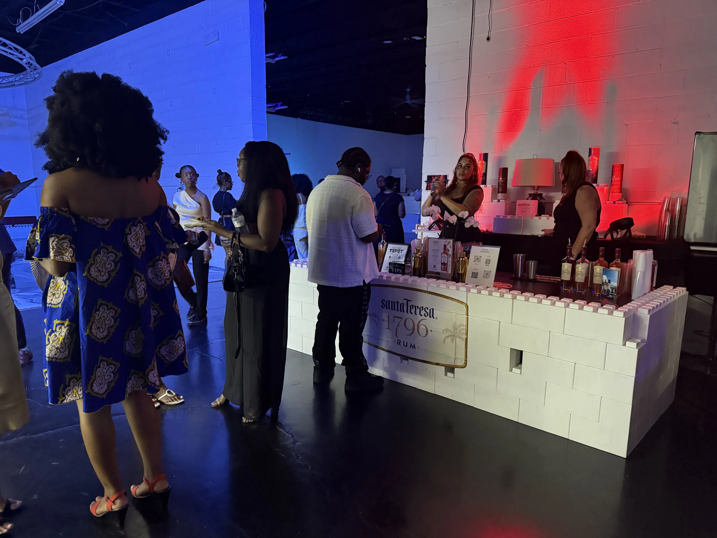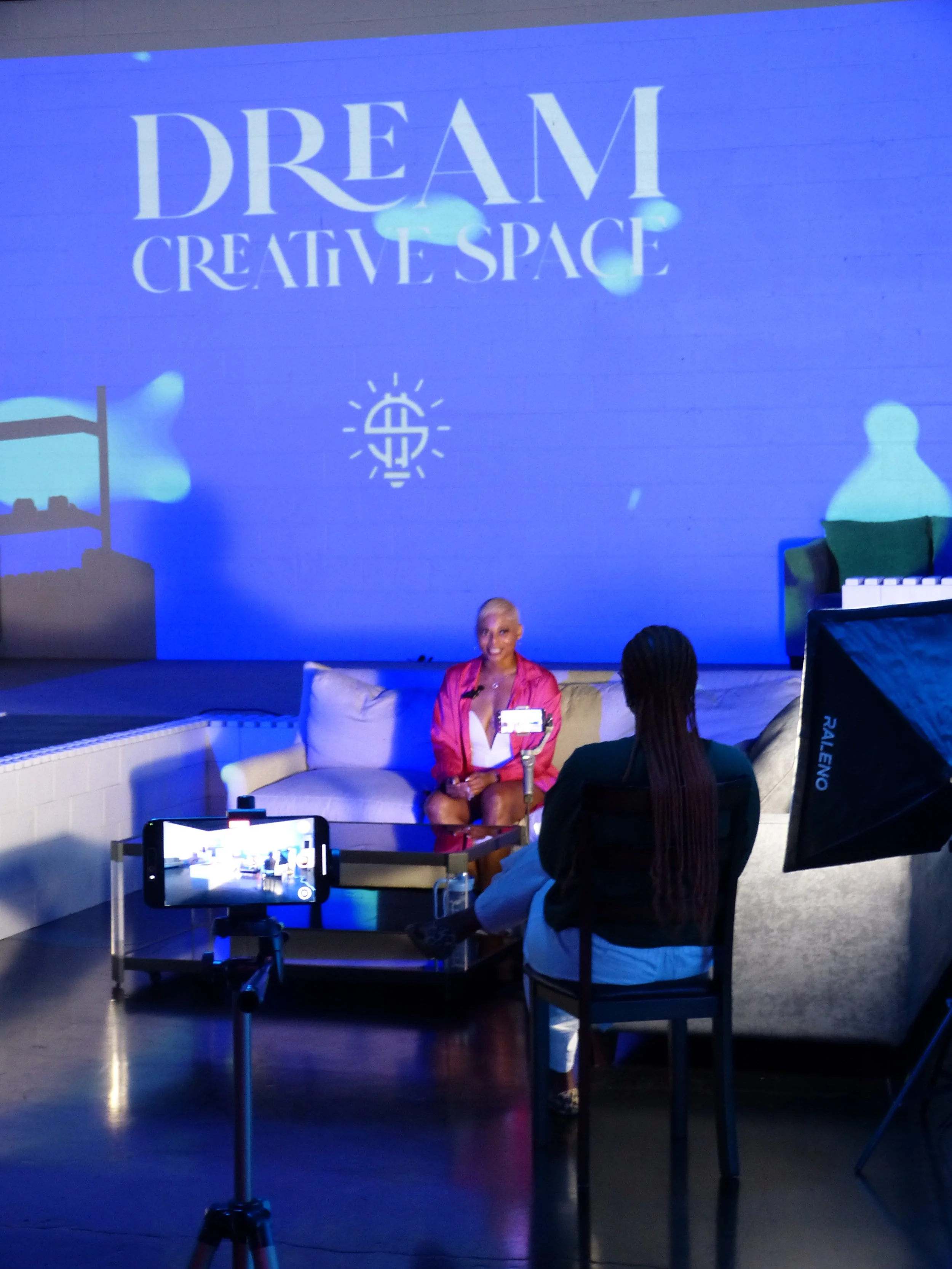 Podcast room, bartending/event zones, screening areas